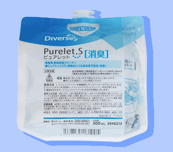 業務用便座除菌クリーナー『ピュアレットS』 トイレットペーパーに吹きつけて便座をサッと拭くだけで、素早く簡単に除菌することのできるクリーナー液です。 エタノールベースのクリーナー成分によって、細菌類を素早く除菌すると同時に、便座に残っている前使用者の汗や脂分なども、素早く分解・除去することができます。 また、速乾性なので、拭きあげてスグ清潔になった便座を使用できます。 速乾性であることに加えて、残留成分もほとんどないので、クリーナーを使い続けることで便座を痛める心配がありません。 新処方の『ピュアレットS消臭』は、従来処方の除菌効果に、ウイルス除去と消臭の効果を加えた製品です。 エタノール・有機酸塩・アルカリ剤の相乗効果で、細菌類だけでなく、ウィルス類も効果的に除去することができます。 消臭効果は、臭気を中和すると同時に、ミントが香る二段構えで、爽やかなトイレ環境を演出してくれるでしょう。 ピュアレットSのパウチ(内容量300ml)は、専用のディスペンサーにセットして使用します。 開閉に鍵を用いるディスペンサーを使用することは、パウチへの悪戯や盗難の防止にもなります。 |
