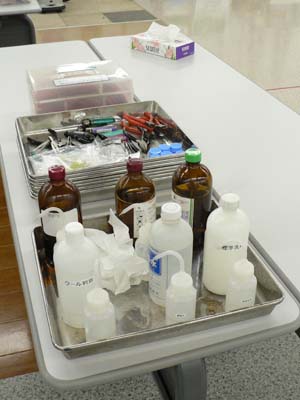 次に、実際の作業現場において、サンプルを採取して実験してみましょう。使われている素材は何か? どんな薬品用いることができるのか? 用いようとしている薬品は悪影響を及ぼさないか? そういったことを、実験セミナーで身につけた知識と手法で判別してください。