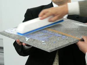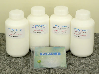 アクアバルーンの特徴『アクアバルーン』は、撥水・防水・防汚効果を備えた、塗料であり、コート剤であり、ワックスでもあるという製品です。 その特徴には―― ・ VOC(揮発性有機化合物)を発生する成分や有機溶剤を一切含まない『完全水性一液型塗料』である。 ・ 火や熱にも耐性があるので、季節ごとに気温の変化を受け易い場所でも利用できる。 ・ アクリル系水性塗料にも関わらず黄変しない。 ――等が挙げられます。 素材や使用目的によってバリエーションがあるようですが、今回は特に『コンクリート用コート剤』について教えていただきました。 |
