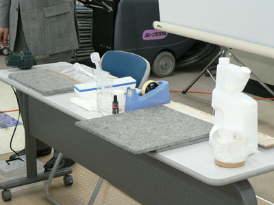 | 2006年4月6日 実施 BMIX実験セミナー 第2回『アクアバルーン撥水剤施工』 ![]() 会場:ジョンソンディバーシー㈱ フロアラボ 講師: 株式会社ワード 代表取締役 田辺宏章 先生 株式会社ジーアンドアイ 取締役社長 皆川光雄 先生 4月6日、ビルメンテナンス企業の関係者を対象にした『アクアバルーン』の説明会が行われました。 製品の開発元や販売会社の方々を講師に迎え、実際に施工に携わる方々を聴講者にしたセミナーは、終了前の質疑応答においては「限られた時間で広い面積に施工するには、どれだけの人手が必要になるか」「施工前の前処理や清掃を、どの程度行う必要があるか」といった、実践的な議論になりました。 現場に携わる方から出る意見は時に辛辣なこともありますが、それも開発企業にとっては参考になる消費者の声となるでしょう。今後も、このように企業と現場が意見を交わせる場として御利用いただければ幸いです。 |