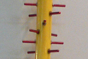 『学校・教育施設展 2005』より株式会社サンワード 『スピリオン』 熱交換式の空調装置などでは、配管内を水が循環していて、この水に含まれる成分が時が経つにつれて結晶して配管内や熱交換器内に付着すると、効率が落ちてしまいます。それを防ぐため、水に添加剤を混ぜたり、循環する水を新しいものに変えることになります。 この『スピリオン』は、装置内を通る水流の摩擦で静電気を作り、水中に放電することで結晶化を防ぐ装置です。 スピリオンを装備したからといって、完全に結晶化を防ぐことはできないのですが、添加剤の注入量や水道料金の節約になります。また施工前に装置の効率をチェックするので、必要最低限の流量を求めて調整すれば、さらに水道料金やポンプを稼動させるための電気料金を削減することができるでしょう。 メーカーの方も「この手の商品は効果が見えにくいので……」と仰ってましたが、実際、こういった装置は短期的では効果が見えず「長期間の節約運転でも問題が発生しなかった」ことでしか、そのメリットを実感することができません。それでも受注実績を拝見したところ、大きな工場などで「試しにひとつ」導入された後、しばらくして「追加」で発注されているケースが多いそうで、それなりに評価されているようです。 水道料金や電気料金、それに薬剤の代金など、大規模施設で長期間の節約を実施すれば莫大な金額になります。まずは「試しにひとつ」いかがでしょう? |