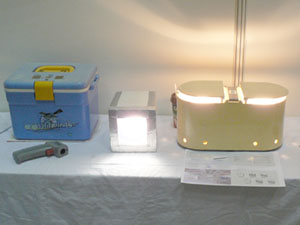 この『エコプロダクツ2005』では、補助発電装置や建物内の電圧を調整して消費を抑える装置、プラスティックの代わりになる植物原料素材、ダンボールに貼り付けたまま捨てられるガムテープ、そういった様々な新商品が展示されていました。