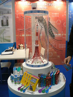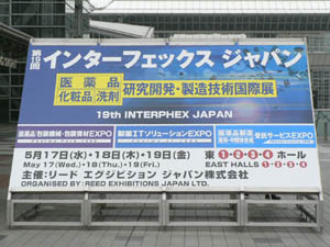 『インターフェックスジャパン』薬品関係の展示会です。会場をザッと見て歩くだけでも数時間を要するほど規模の大きなイベントでした。 内容に「洗剤」とあるので取材に行ったのですが、展示の大半は薬品メーカーと製造工場を対象にしたもの(生産受注のプレゼンテーションや、生産ライン用機器など)で、あまり日常清掃に通じる展示はありませんでした。やはり少々畑違いだったようです。 |