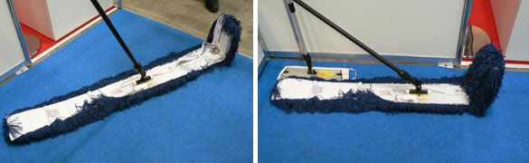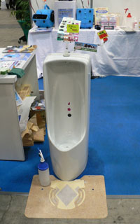 『総合資機材展示会』展示ホールにて開催の総合資機材展示会では、全104社もの企業による、新商品の展示やデモンストレーションが行われていました。特に昨今では『環境に配慮』という文言は、売り文句に欠かせなくなっているようです。 こういった展示会では、多くの製品資料やサンプルを入手することができます。また、企業の関係者からも直接お話を伺うことができるのですが、会話のうえで『この製品には、こんな欠点があるんじゃないだろうか?』といった疑問を口にすると、意外なほど率直に、カタログには載ってない製品が苦手とする部分や、その回避方法のアイディアなどを教えてくれることがあります。 ちょっと面白かったのは、背広姿のいかにもな会社員に混じって、まるでその場を清掃作業中であるかのごとく作業着姿の中年女性が、数人で会場を巡っていたことです。それも、小脇に大量のサンプル品を抱えて。 実際、現場で作業をしている方ならば、きっと研究熱心な方々なのでしょうけれど……なぜに作業着姿……? もしかすると、技能競技会の出場者だったのかも知れません。 会場では、大掛かりな機材から、ちょっとしたアクセサリー的な物まで、数多の新商品が展示されていましたが、そんな中から、ちょっと気になった小物を数点、紹介します。 |
